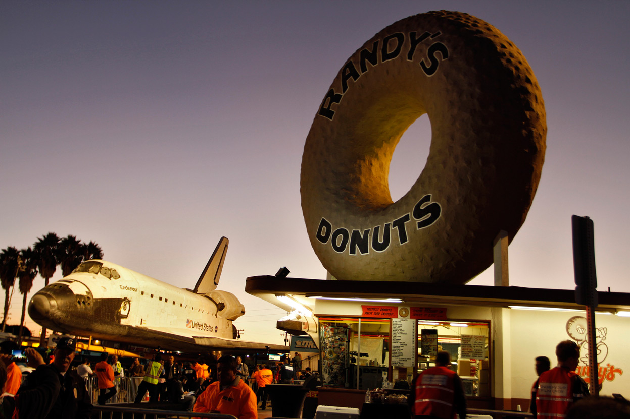 The Atlantic’s In Focus blog has a superb gallery of photos showing how Space Shuttle Endeavour has made its way through Los Angeles on its way to its final destination, California Science Center. This is an urban feast for the eyes:
