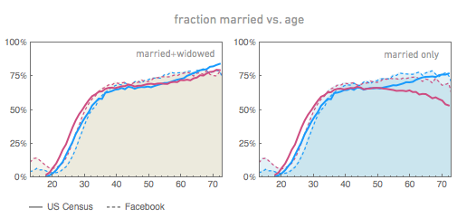 Facebook marriage age vs. Census data.